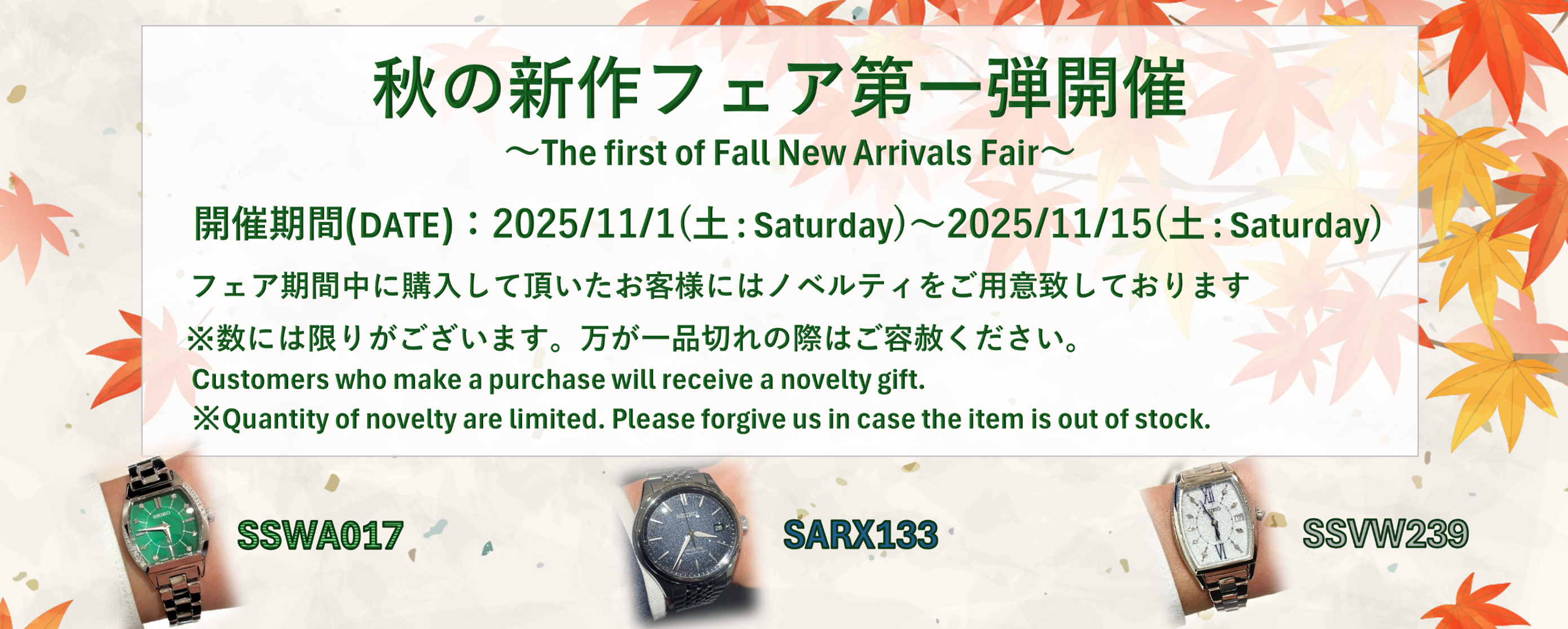 【予告】秋の新作フェア第二弾 ~The second of Fall New Arrivals...